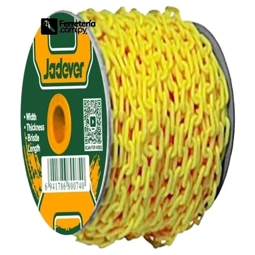 Cadena plástica amarilla JADEVER, ligera y resistente, ideal para señalización, delimitación de áreas y control de acceso en interiores o exteriores.