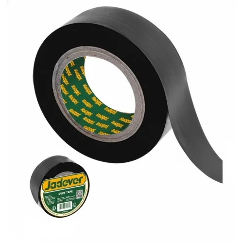 Cinta aisladora negra JADEVER, resistente y flexible, ideal para aislamiento eléctrico, protección de cables y reparaciones en instalaciones eléctricas.