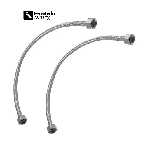Conexión flexible de 40 cm, fabricada en acero inoxidable 301, ideal para instalaciones de plomería en lavatorios, inodoros, calefones, bidets y piletas de cocina. Viene en un paquete de 2 unidades, ofreciendo durabilidad y resistencia para conexiones hidráulicas seguras.