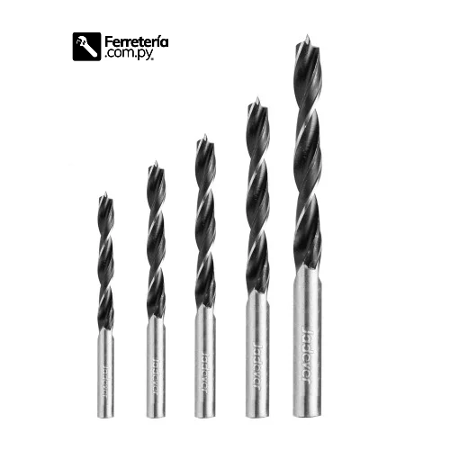 Mechas para madera JADEVER JDSJ3K01 (5 piezas, 3–8 mm), fabricadas en acero resistente, ideales para perforar madera de manera precisa y eficiente. Perfectas para trabajos de carpintería y bricolaje profesional.