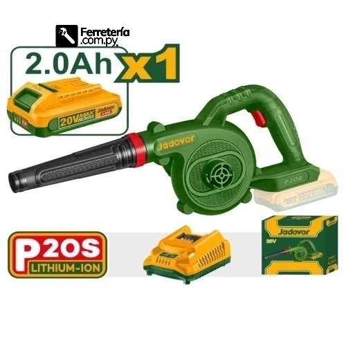 El Mini Soplador Jadever JDBLP522 es una herramienta compacta, potente y portátil, diseñada para limpiar de forma rápida y eficiente hojas, polvo, residuos y otras partículas en espacios de trabajo, jardines, talleres o automóviles.rnFunciona con una batería de litio de 20V 2Ah, lo que le brinda libertad de movimiento y gran autonomía.