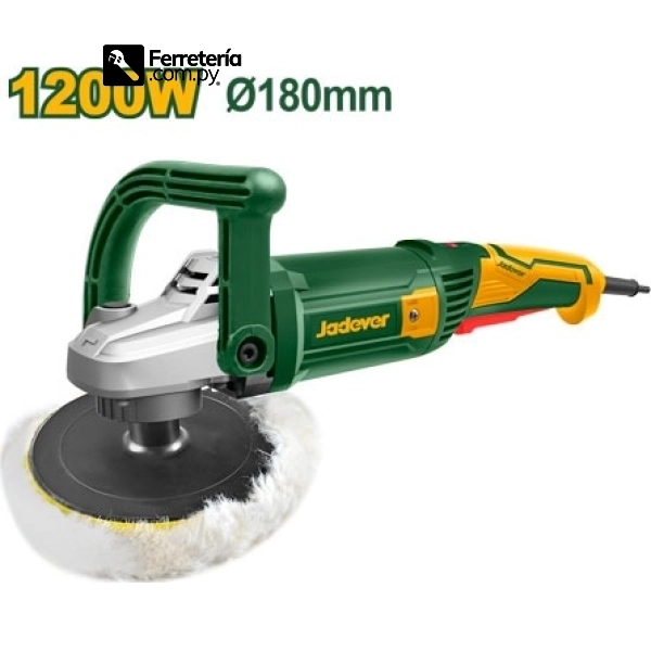 La pulidora Jadever es una herramienta eléctrica de alto rendimiento diseñada para pulir, abrillantar y eliminar imperfecciones en diversas superficies, como metal, piedra, madera y pintura. rnCon una potencia de 1200W, ofrece una gran potencia que permite un trabajo eficiente y rápido, especialmente en tareas de restauración y acabado de superficies.rnSu disco de 180 mm de diámetro proporciona un área de trabajo amplia, mientras que su diseño ergonómico y sistema de control de velocidad hacen que sea fácil de manejar y adaptar a diferentes necesidades de pulido.